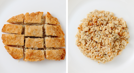ご高齢者様が食べやすい大きさ・形・固さはもちろん、必要以上に薄味にならないようにだし汁で下味をつける、 食感を大切にするなど、食の楽しみにもこだわりを持っています。