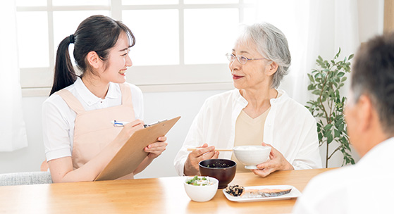 ご高齢者様に必要な栄養素を目安に、専属の栄養士がバランスよく献立を考えています。